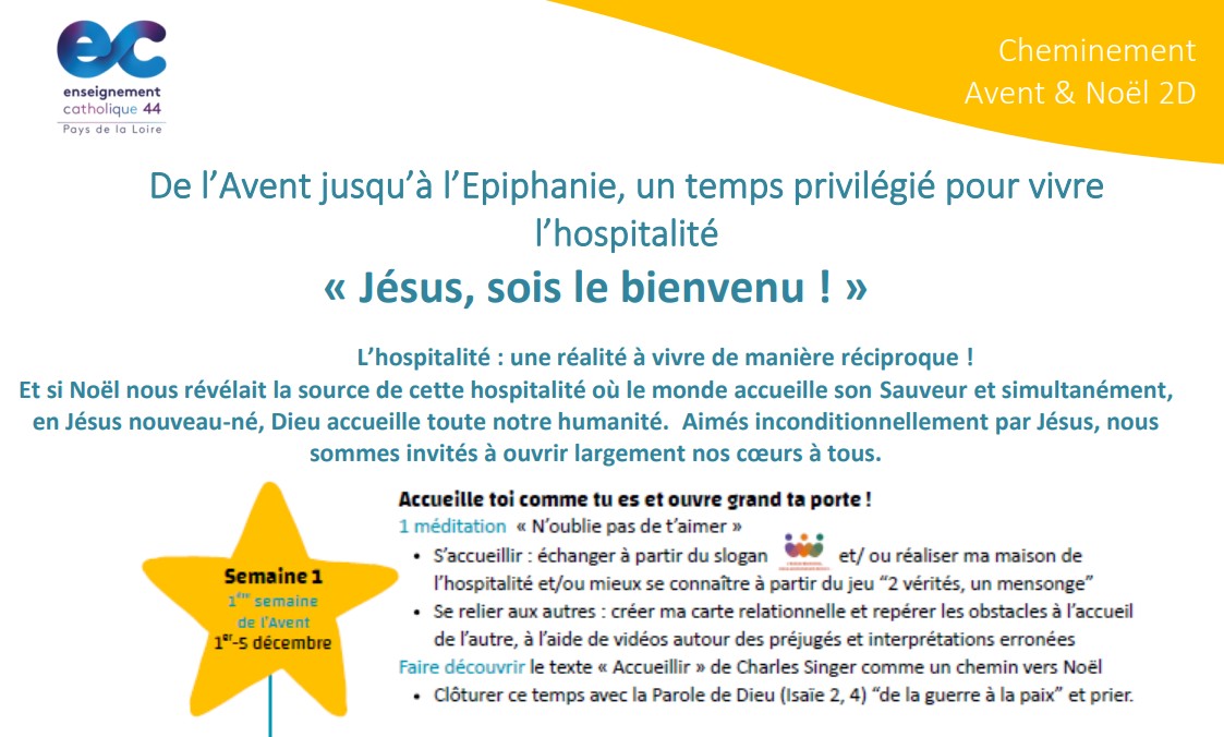 Pour vivre le temps de l’Avent et se préparer à célébrer Noël dans une dynamique d’hospitalité, nous vous adressons une base de ressources élaborées par le Service d’Animation Pastorale en collaboration avec les APS des bassins Erdre et Loire et Mée et avec Véronique, chargée des Arts et de la Culture à la DDEC.