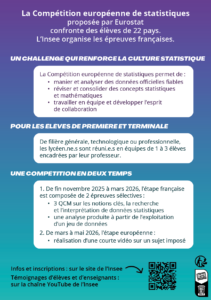 Un challenge qui renforce la culture statistique et la coopération ? Enseignants de lycée, participez à la compétition européenne des statistiques ! Si vous souhaitez en savoir plus, un webinaire a lieu le 13 octobre.