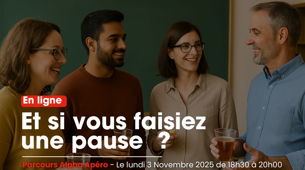 Faire une pause pour prendre soin de soi : une proposition en ligne dédiée aux acteurs de l’Enseignement Catholique ! C’est ce que propose le Parcours Alpha Apéro, à raison d’une rencontre chaque semaine du 3 novembre 2025 au 2 février 2026.